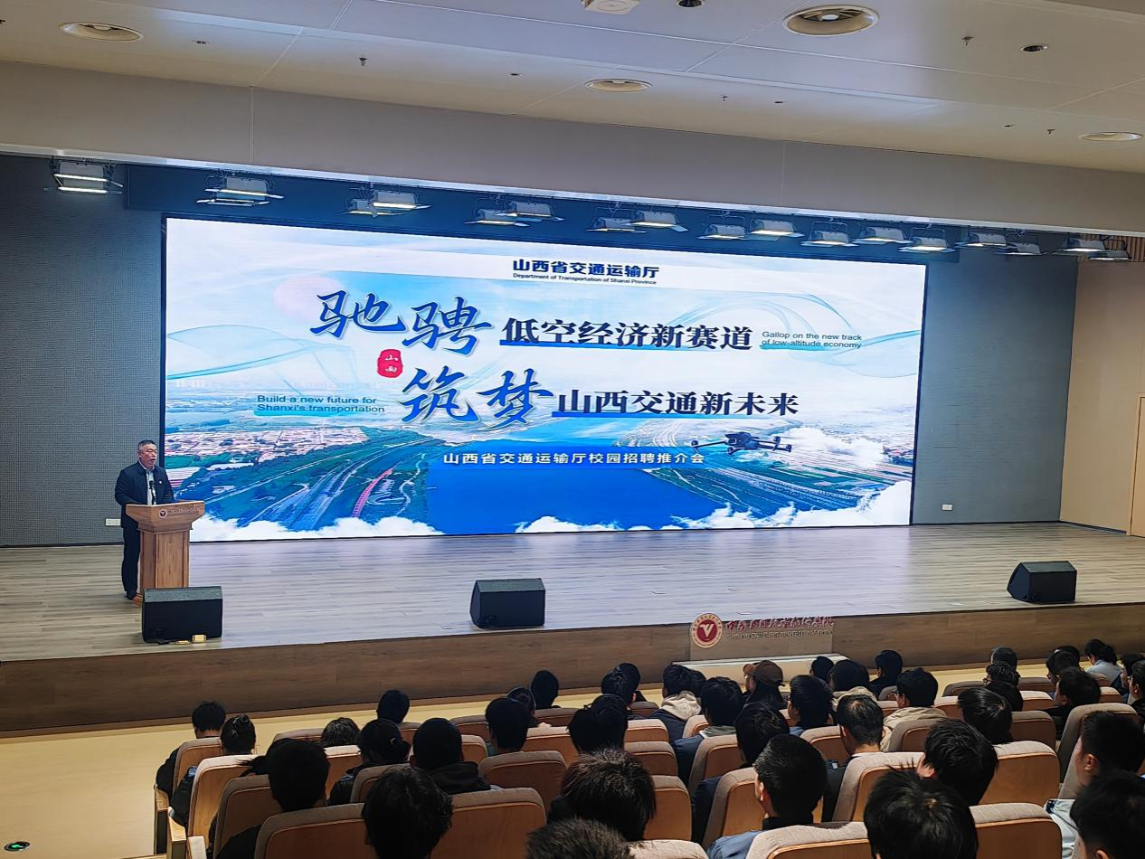 会上,王维正对山西省交通运输厅一行的到来表示欢迎,并介绍了学校的基本情况。他认为,此次招聘推介是深化校地协同育人、服务国家低空经济发展战略的重要举措。段新源在致辞中表示,山西省交通运输厅作为全省低空经济协同管理牵头单位,正加快推进基础设施建设与产业生态培育,对高素质专业人才需求迫切。推介环节,李宇淘系统阐述了山西省低空经济发展规划、重点方向及人才需求情况;卢奋卿就招聘的岗位设置、报考条件及职业发展路径等情况进行了现场解答。本次招聘面向交通运输大类相关专业,重点选拔契合低空经济发展需求的专业人才。