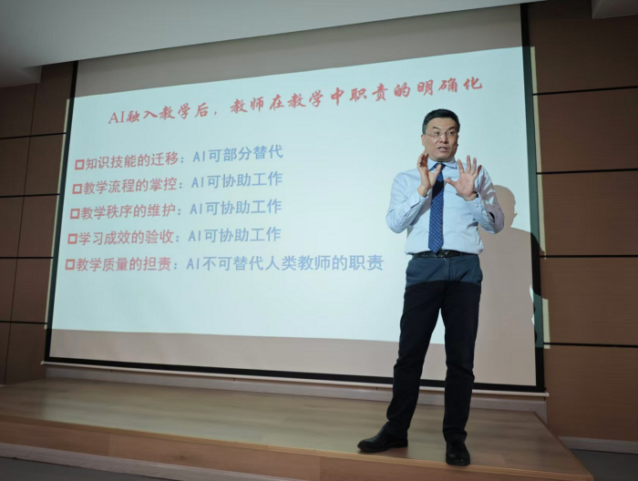 活动中,朱新平致辞指出:“长空论坛”是学院推动教学科研交流、提升教育教学水平的重要平台。面对教育数字化发展趋势,民航教育正加速迈向智能化、数字化,将AI工具、智能体、任务引擎等技术融入教学全过程势在必行。周屈兰围绕智慧教学时代背景、教学体系模型原理、数字化课程建设路径以及关键技术支撑进行讲解,并结合实践案例介绍基于知识图谱的课程构建思路及AI赋能课程架构及工具应用逻辑,展示了AI辅助课堂交互、任务引擎应用和教学评价等典型场景。讲座坚持理论与实践相结合,内容充实、针对性强。交流环节,与会教师围绕AI技术在民航课程中的应用、智慧课程建设难点、任务引擎落地路径等问题深入交流。程擎总结本次论坛紧扣教育数字化发展前沿,契合学院教学改革实际,为推进智慧教学提供了思路与方法,并强调民航教育要主动顺应技术发展趋势,推动人工智能与教育教学深度融合。