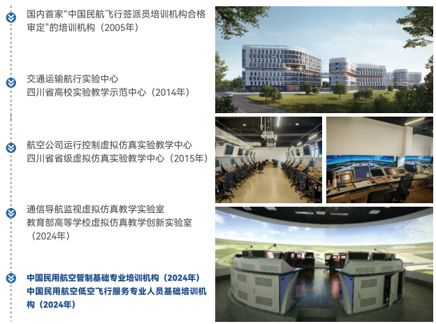 学院是国内首家“中国民航飞行签派员培训机构合格审定”培训机构(2005年),拥有交通运输航行实验四川省高校实验教学示范中心(2014)、航空公司运行控制虚拟仿真实验教学中心四川省省级虚拟仿真实验教学中心(2015年)、通信导航监视虚拟仿真教学实验室教育不高等学校虚拟仿真教学创新实验室(2024年)。
