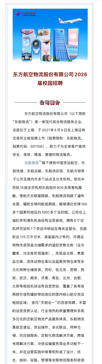 东方航空物流股份有限公司2026届校园招聘