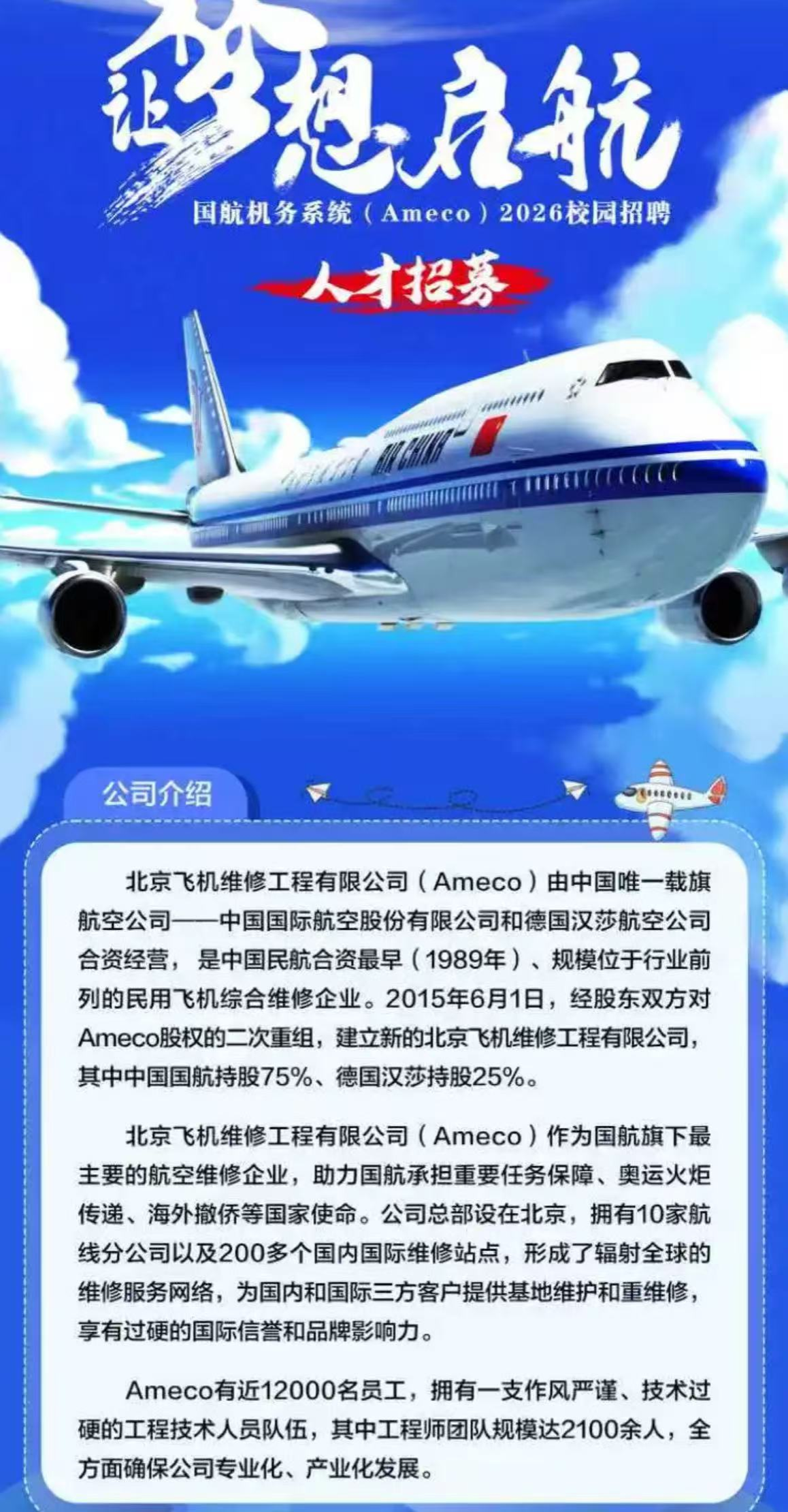 北京飞机维修工程有限公司2026届校园招聘
