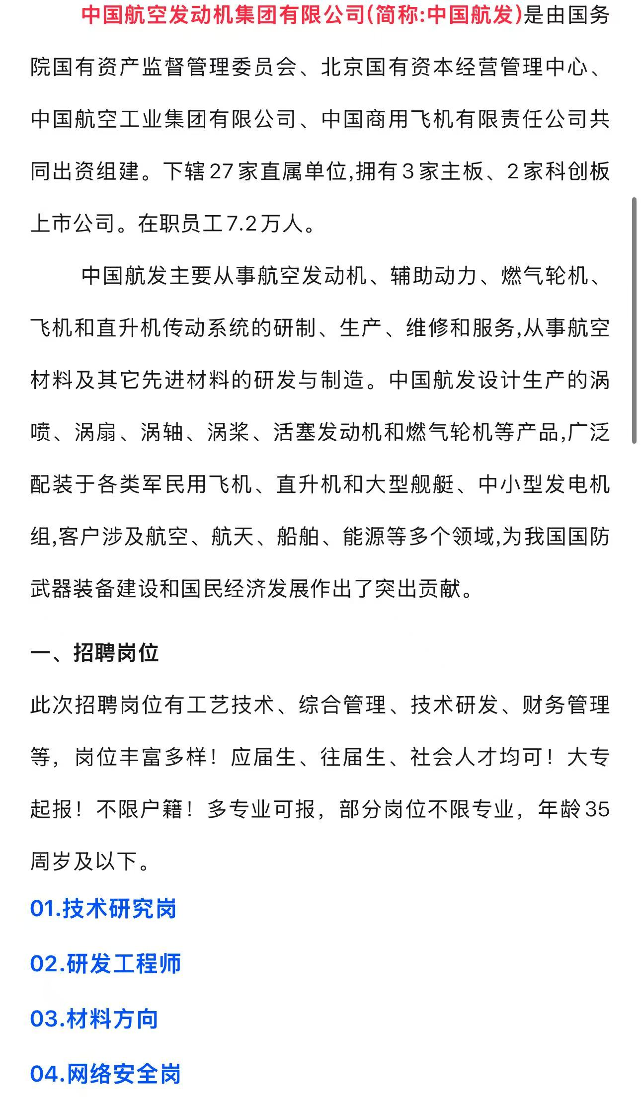 中国航发2026招聘公告